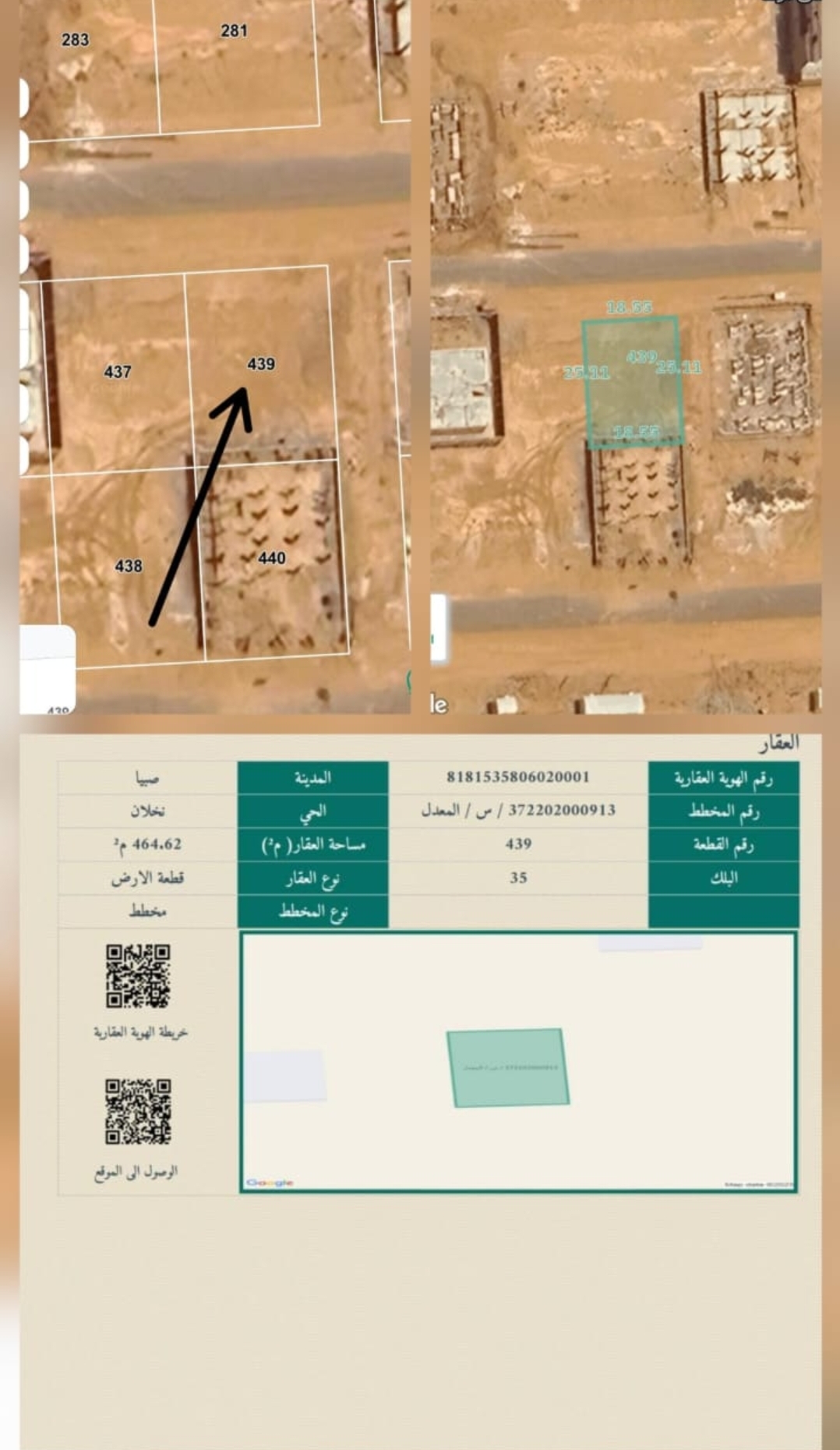للبيع ارض في نخلان صك الكتروني ورخصه بناء تقبل البنك واستخراج قرض عقاري وسيوله للعميل رقم القطعة439 بلوك35 مساحه 464م٢ شارع 18م٢وممر