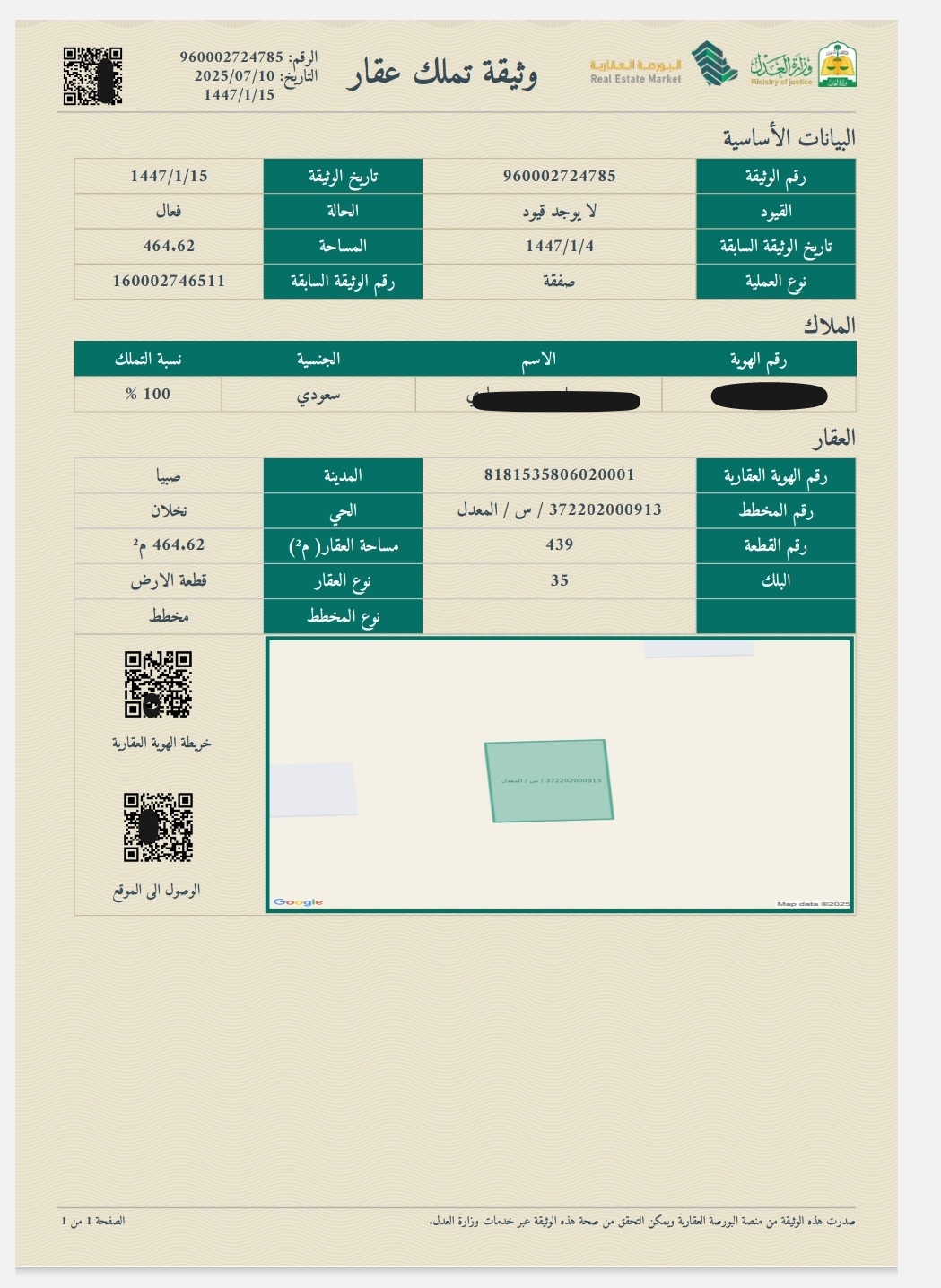 للبيع ارض في نخلان صك الكتروني ورخصه بناء